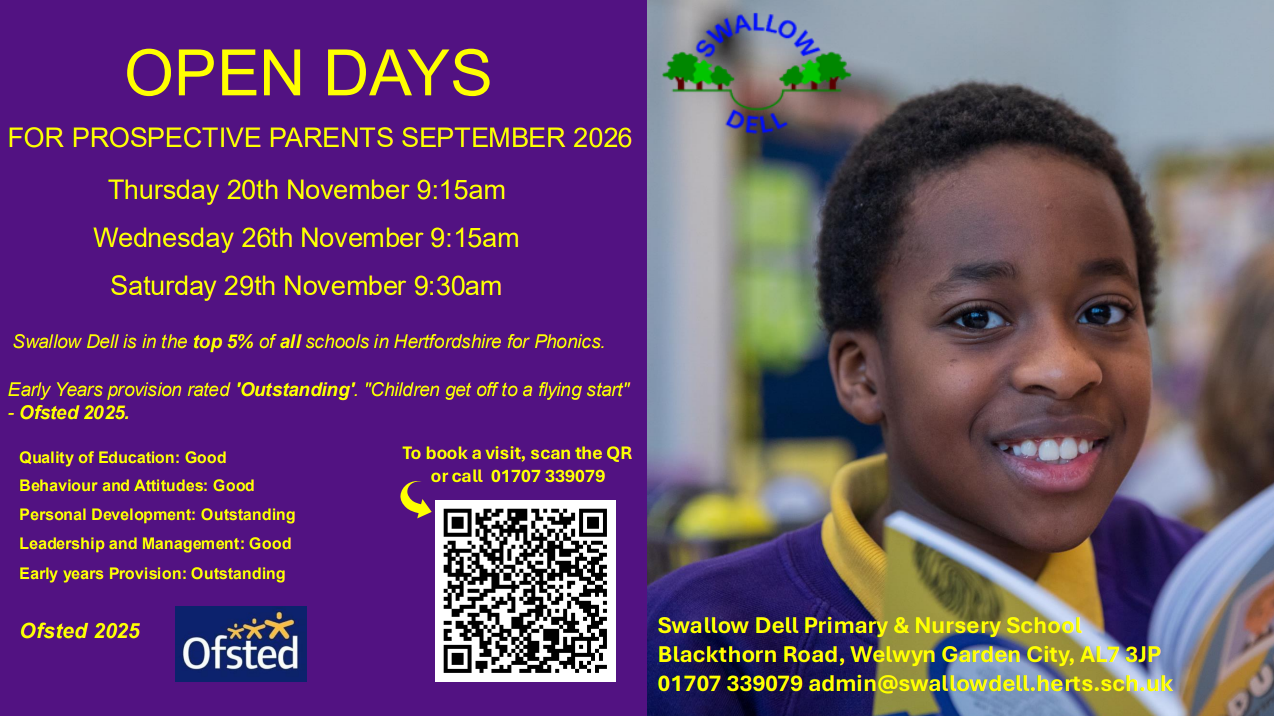 Swallow Dell Primary & Nursery School are delighted to announce the outcome of our recent Ofsted inspection. We were inspected in June 2025, please see our Ofsted report here: